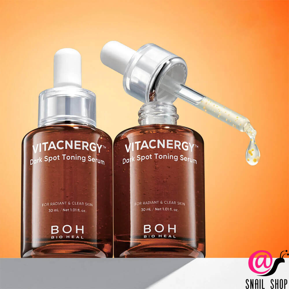 Сыворотка BIOHEAL BOH Vitacnergy Dark Spot Toning Serum сокращает видимость пигментации, вызванной воздействием ультрафиолета, уменьшает выраженность веснушек и постакне. Избавляет от тусклости, делает тон кожи ровным и придаёт сияние.