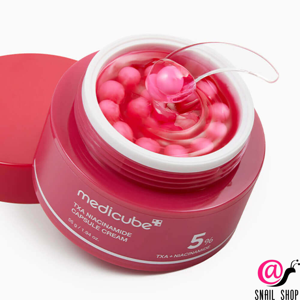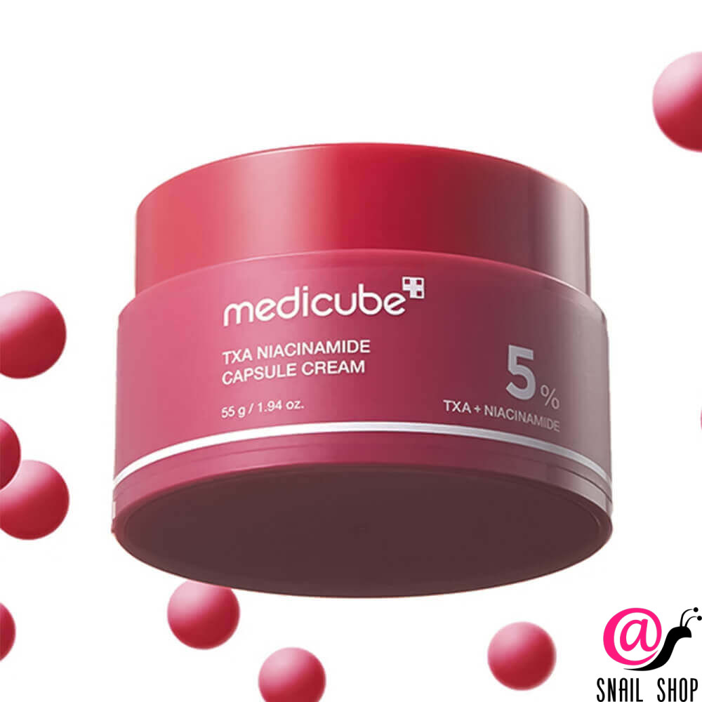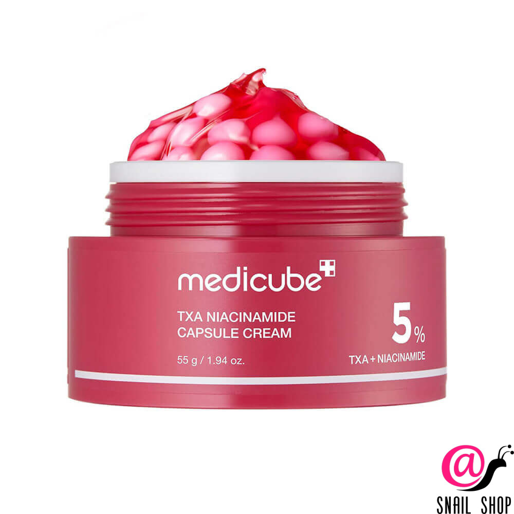 Крем medicube TXA Niacinamide Capsule Cream препятствует образованию пигментных пятен и деликатно осветляет уже существующую пигментацию, выравнивает тон и придаёт сияние.
