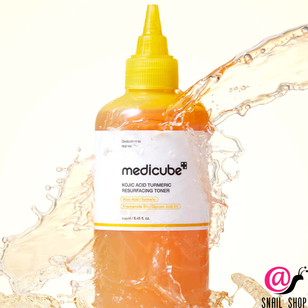 Тоник с кислотами для сияния кожи medicube Kojic Acid Turmeric Resurfacing Toner отшелушивает ороговевшие клетки, смягчает и выравнивает микрорельеф, избавляет от тусклости и способствует осветлению постакне. Регулирует активность сальных желёз, абсорбирует излишки себума и растворяет комедоны, сужает поры.