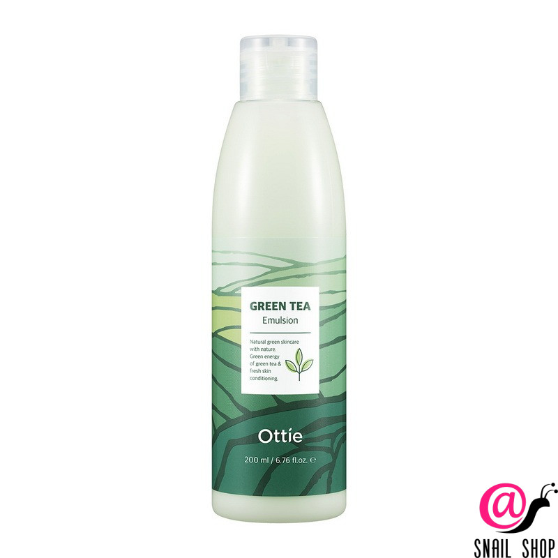 Увлажняющая эмульсия с экстрактом зеленого чая Ottie Green Tea Emulsion быстро и эффективно восстанавливает яркость и свежесть кожи, придает ей матовое, фарфоровое сияние, ухоженный и отдохнувший вид. Эмульсия быстро впитывается и работает не только на поверхности, но и в глубоких слоях кожи, очищает клетки от токсинов и других последствий негативного влияния внешних факторов. Восстанавливает межклеточные связи, активизирует процессы выработки коллагена и эластина, наполняет необходимыми питательными веществами и минералами, увлажняет, уплотняет и подтягивает тургор. Снимает отечность и следы стрессов, выравнивает цвет кожи, устраняет гиперпигментацию, успокаивает раздражения и предотвращает шелушения.