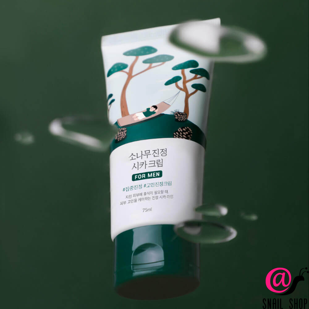 Крем Round Lab For Men Pine Calming Cica Cream увлажняет мужскую кожу, восстанавливает после бритья, препятствует появлению акне и жирного блеска.
