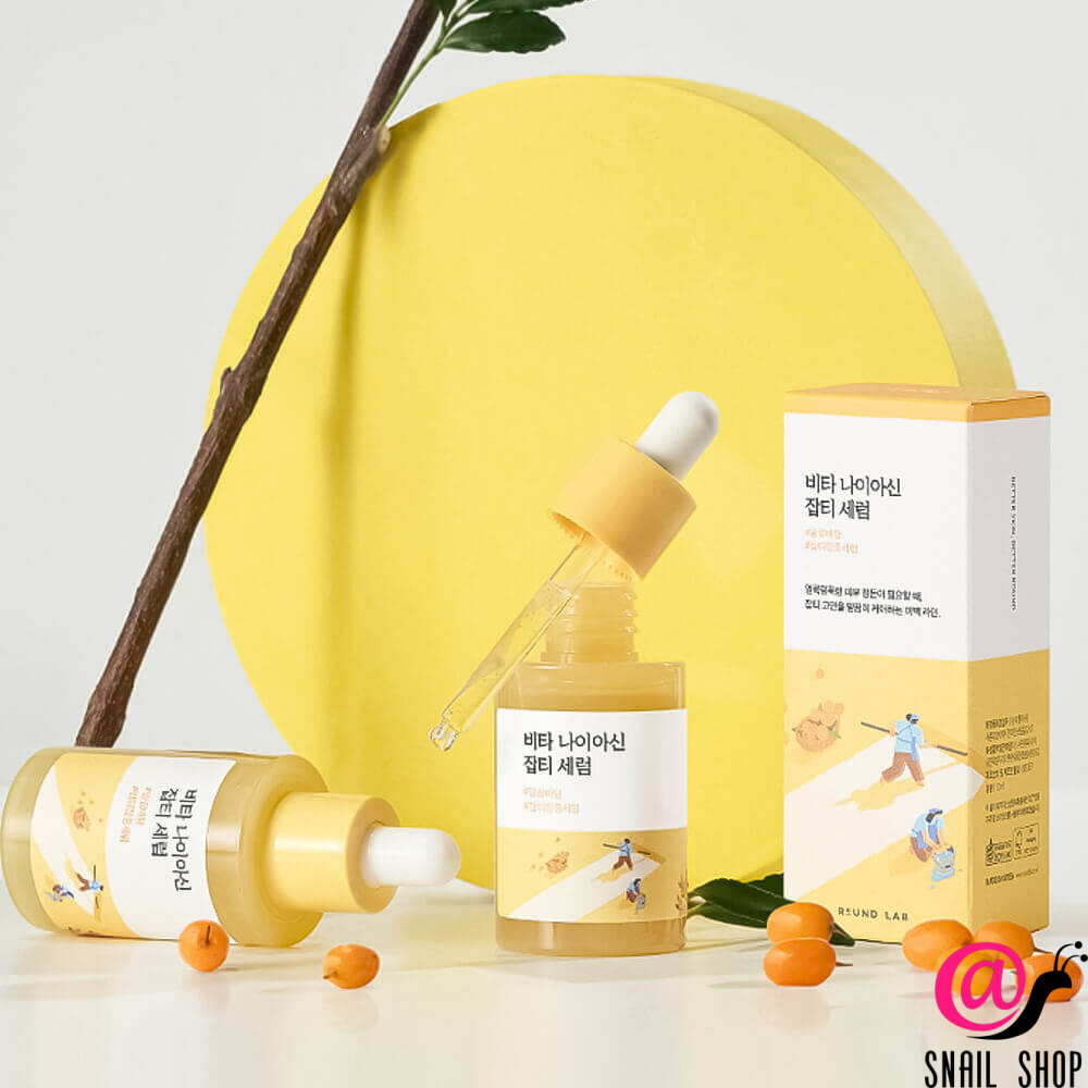 Капсульная сыворотка Round Lab Vita Niacinamide Dark Spot Serum выравнивает тон, уменьшает видимость пигментных пятен, веснушек и следов постакне, устраняет тусклость, придаёт естественное сияние.