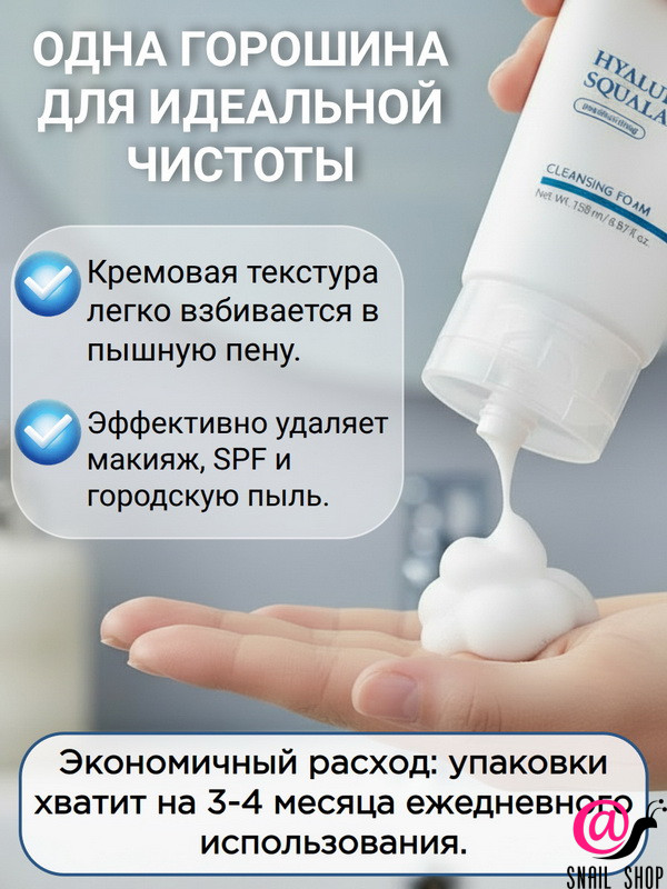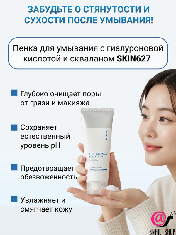 SKIN627 Пенка с гиалуроновой кислотой и скваланом Hyaluron With Squalane Moisturizing Cleansing Foam