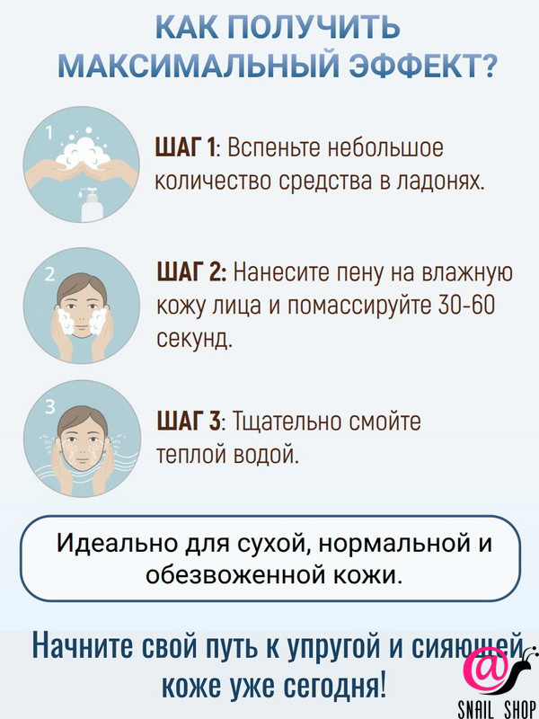 Увлажняющая пенка для лица с Гиалуроном и Скваланом. Освежает и эффективно очищает любые виды загрязнений и остатки макияжа.