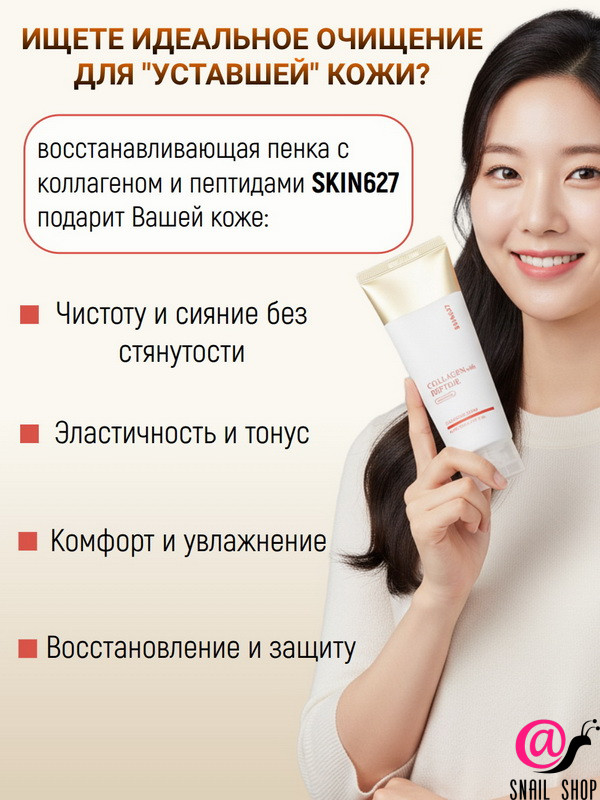 SKIN627 Пенка с коллагеном и пептидами Collagen With Peptide Revitalizing Cleansing Foam