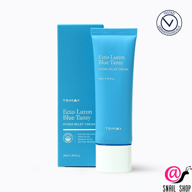 Интенсивный увлажняющий крем Trimay Ecto-Luron Blue Tansy Hydra Relief Cream избавляет кожу от сухости и обеспечивает пролонгированное увлажнение благодаря содержанию 8 видов гиалуроновой кислоты, 19,6% гидролата листьев алоэ вера, масла голубой пижмы и эктоина.